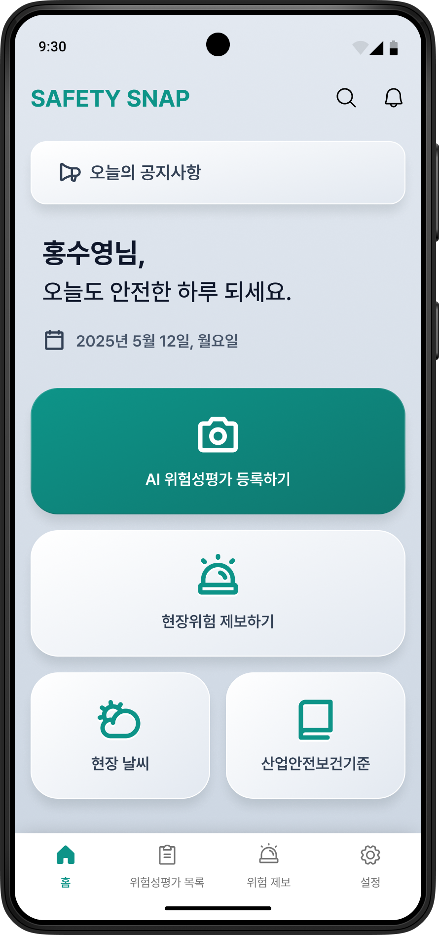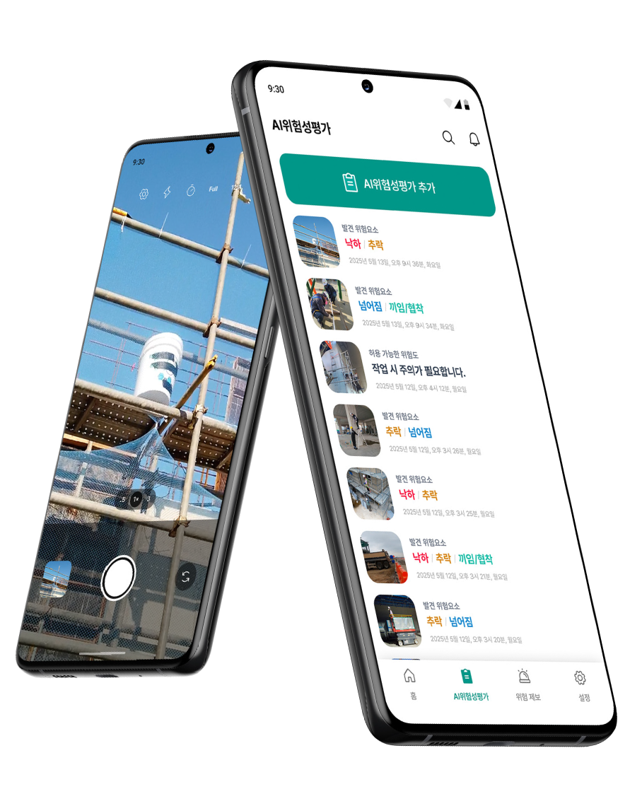 사진 인식 기반 위험요소 AI 분석, AI 자동 위험성 평가서 생성, 현장 위험제보 등 점검 지원